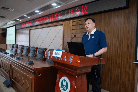 (通讯员:魏寅 王郁 王静)6月11日下午,我校2024-2025学年第二学期期末工作会议在逸夫国际会议中心一楼报告厅顺利召开。周鹏程副校长出席会议。学校本科教育督导员,各学院(部)分管本科教学工作副院长、教学秘书,本科生院班子成员及全体工作人员参会。会议由本科生院院长刘清堂主持。