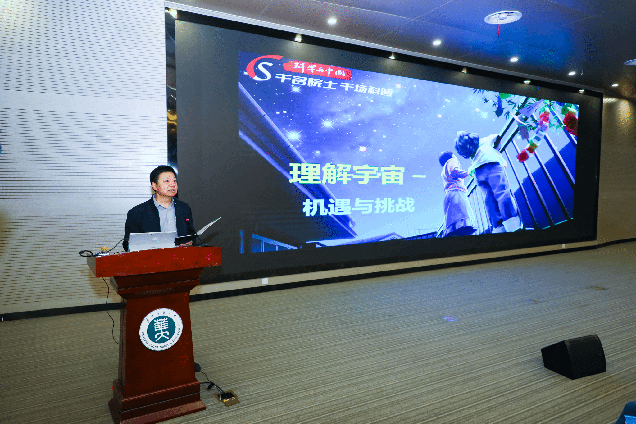 在专题报告中,武向平院士从“时空视角下的宇宙探索”开篇,通过时空维度的对比,生动阐释了宇宙的浩瀚与人类的渺小。他围绕“宇宙从哪里来、宇宙到哪里去、谁主宰宇宙的命运”三大核心问题,引导听众深入思考宇宙本源,并系统梳理了人类探索宇宙起源的认知历程。