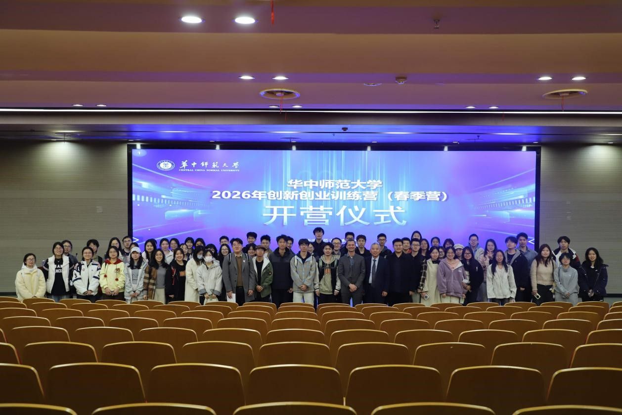 (通讯员:何颖 侯正义 )华中师范大学2026年创新创业训练营(春季营)开营仪式于3月13日在南湖综合楼一楼报告厅举行,本次训练营由本科生院主办,化学学院承办,旨在深化创新创业教育改革,培育优秀双创项目与团队,为青年学子搭建施展创新才华、实践创业梦想的优质平台。湖北省高等学校毕业生就业指导服务中心大学生创业服务部副部长姬同桀龙,武汉专创融合科技研究院院长高泽金,武汉好多货国际物流有限公司创始人胡萝卜,武汉同创教育科技集团有限公司CEO杨浩然,华中师范大学本科生院副院长陈娟、化学学院副院长原弘出席本次开营仪式,仪式由本科生院陈龙老师主持。