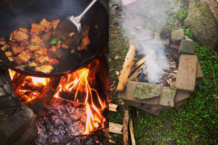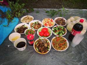 即使条件很简陋,在所有成员们的一致努力下,克服了下雨,点不着火,烟太熏人等一切困难,很快一桌子饭菜就出炉了。享受着自己的劳动成果,这一顿,每个人都吃的异常幸福、满足。