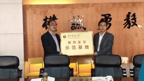 2017年11月8日上午,华中师范大学教务处胡中波副处长与马克思主义学院李芳副院长率队出席与武汉中学共建教育实习示范基地签约挂牌仪式。武汉中学杨定成校长、教务处黎丹主任,我校教务处胡志荣老师、我院高鑫老师出席签约挂牌仪式。