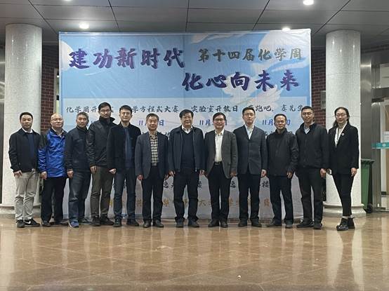 刘买利、任友洲和肖文精共同开启了化学周的揭幕仪式。随着嘉宾们将锥形瓶中的碘化钾溶液倒入,三个容器上的“化学周”镂空字样因化学反应而呈现出红、蓝、绿三种不同颜色。其中,红色象征传承红色基因,蓝色代表永不言弃的精神,绿色凸显传承与创新。三种鲜艳亮丽的颜色,共同展现着化学人将秉持化学周的精神,砥砺前行,续写辉煌。