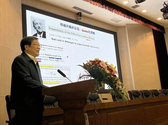 稍作休息后,第205期“博雅大讲堂”正式开始。刘买利为同学们带来“生物NMR波谱——从分子甄别到功能分析”主题报告,主要从NMR的发展与贡献、技术与方法的进步和生物分子与功能分析三个部分展开。他简要介绍了核磁共振谱的发展历史,列举了NMR在高效脉冲序列等多个方面的应用,向同学们详细介绍了此技术的发展和进步,展示了丰富的生物模型和图表,并借此引出生物大分子研究方面的NMR研究,向同学们说明了该技术的高效性和广泛性。刘买利的报告内容生动精彩,为在场的化学人们送来了一次思想的碰撞,一场知识的盛宴。