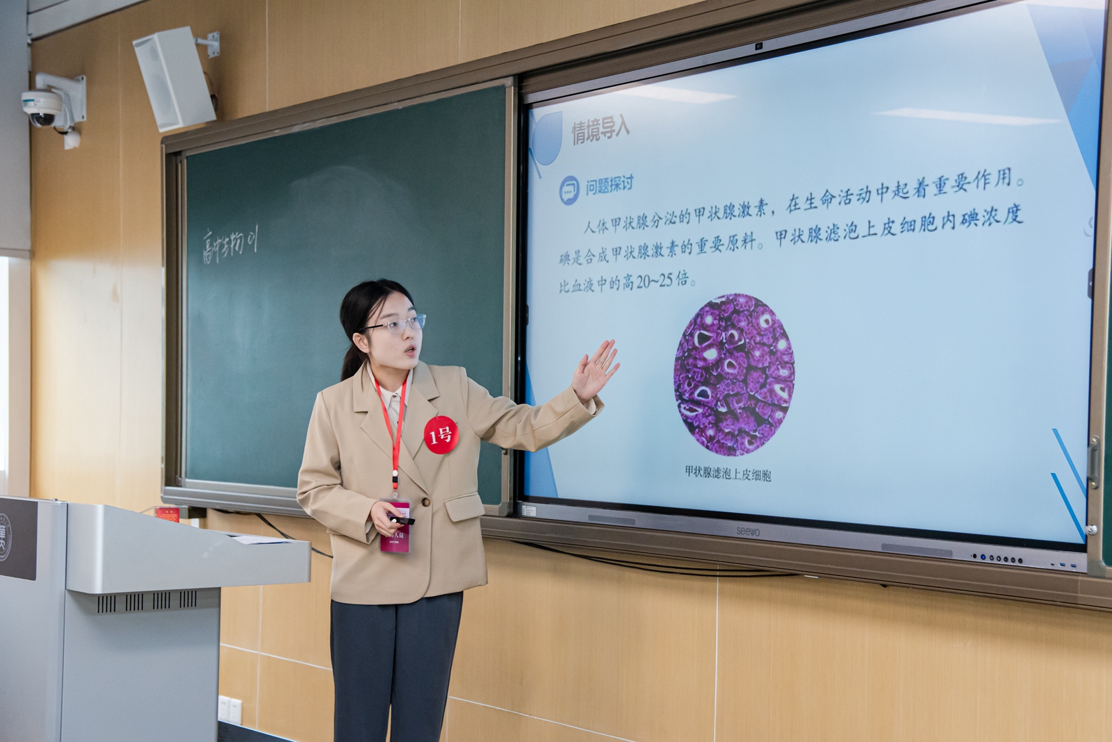 湖北省特级教师袁汉杰和梅晴作为评委代表对本次比赛进行点评,对选手表现提出了建设性的意见。袁汉杰强调,教师在课堂上要重视与学生进行眼神交流以及把握教学节奏。梅晴则建议师范生打开眼界看生活,结合生活情境组织课程,赋予教学内容以生机和活力,帮助学生成为探究型、创作型人才。