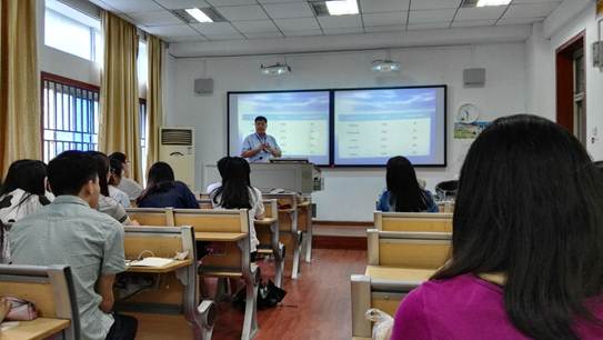 王战教授首先带领大家大致了解了一下我国自建国以来的经济政策的变化,并且详细地分析了各个时期实行不同的经济政策以及同一时期不同区域实行不同经济政策的原因。紧接着,王战教授进入到此次会议的主题“Une ceinture et une route”,即“一带一路”。王战教授向大家详细地解释了“一带一路”的深刻内涵并且细致地分析了我国实施这一伟大经济策略的原因。最后是问答环节,法语系王佳老师首先帮同学们问到大家比较关心的关于毕业后到非洲发展的形势问题,王战老师就此给了同学们分析了一下非洲就业形势并且给了大家一些好的建议。