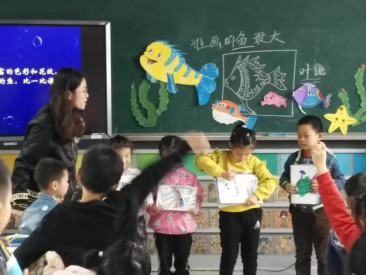 韩雨思在讲《谁画的鱼最大》一(4)班