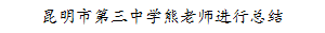 (通讯员:何 娅 马萁池 )11月8日上午10点,华中师范大学实习生座谈会在昆明市第三中学如期举行。出席本次会议的老师主要有华中师范大学实习生指导老师蒋玲、昆明市第三中学教务处主任熊坚,以及华中师范大学赴昆明市第三中学全体实习生。会议由实习小组长马萁池主持,主要由各学院实习小组的汇报发言、熊老师的总结反馈和蒋老师的期许要求三个部分组成。