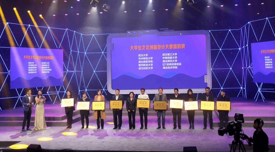 现场,湖北省人民政府副省长肖菊华,湖北省人民政府副秘书长陈正祥,湖北省文化和旅游厅、省发改委、省教育厅、省人社厅、省科技厅、共青团湖北省委、省妇联等各主办单位领导出席并为获奖师生颁奖。本次大赛自7月份正式启动以来,吸引了包括武汉大学、华中科技大学、华中师范大学、北京电影学院、中南民族大学等众多省内外高校广大师生的积极参与,总报名人数5123人,共收到4588件作品,创历史之最。经初评后共有266件作品进入复赛,八场复赛比拼后,163件优秀作品进入决赛,经过专家终评,最终评出80个奖项,其中10个项目与企业完成现场签约。