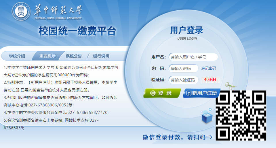 2、学校本科生院将于2024年5 月22 日,在本科生院网→通知公告→学生栏公布录取结果。学生根据公布的录取结果,在规定的缴费时间登录华中师范大学网上自主缴费平台缴费http://218.199.196.90/(手机缴费请扫二维码)。