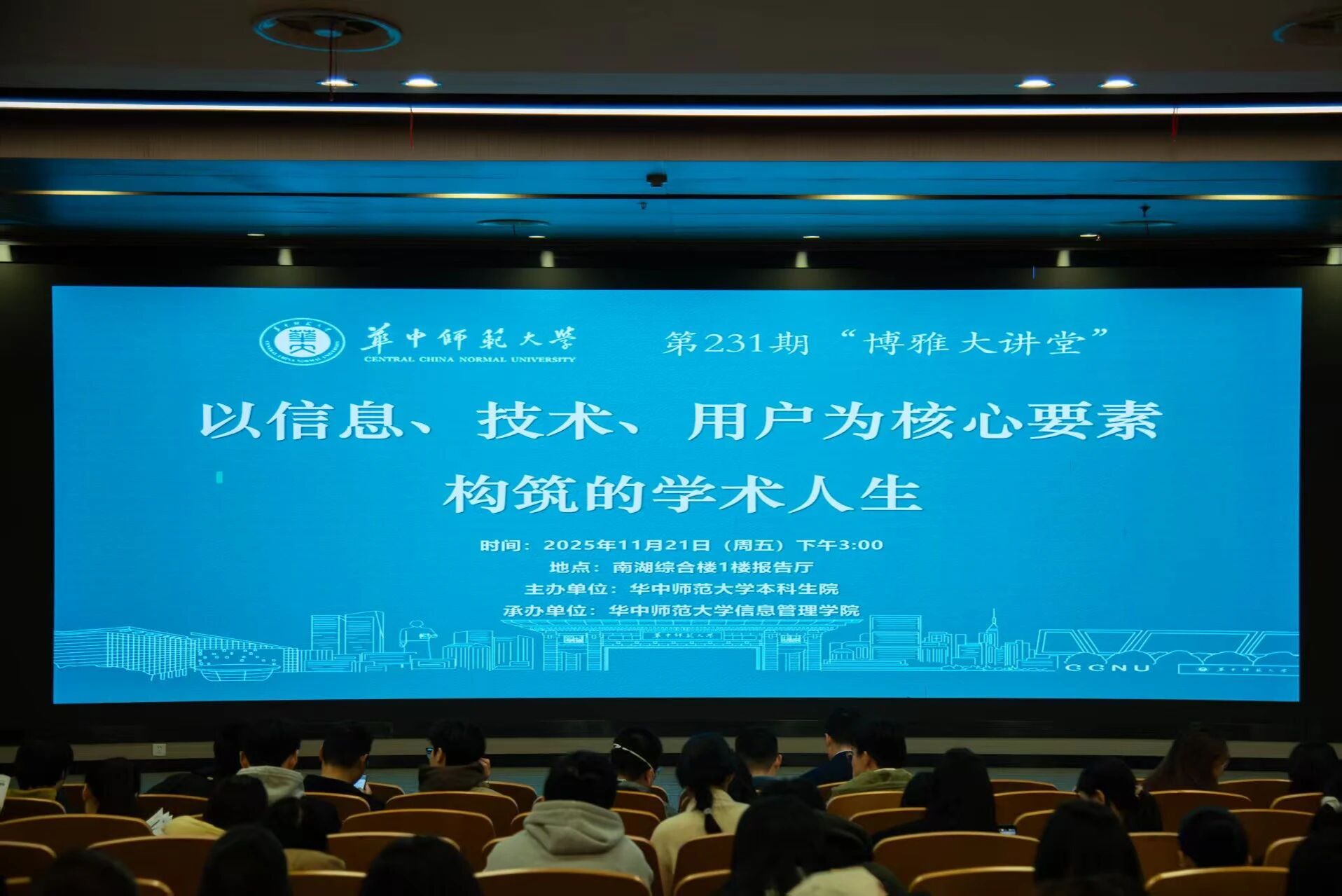 11月21日下午,由华中师范大学本科生院主办、信息管理学院承办的第231期“博雅大讲堂”在南湖综合楼一楼报告厅隆重举行。本期大讲堂特邀国家重大人才工程特聘教授、南开大学杰出教授李月琳作题为《以信息、技术、用户为核心要素构筑的学术人生》学术讲座。国家级人才计划青年学者、南京大学信息管理学院赵宇翔教授,华中师范大学党委常委、副校长李鸿飞,华中师范大学信息管理学院党委书记王雨露,副院长易明、刘百灵等出席大讲堂,校内外师生代表300余人参加活动,讲座由华中师范大学本科生院副院长卢新元主持。