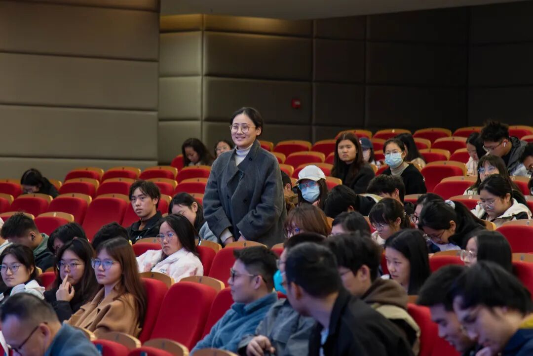 互动问答环节气氛热烈,师生们围绕研究方向选择、加强专业学习等问题踊跃提问。李月琳教授耐心回应,强调研究课题应扎根实践土壤、回应现实关怀,鼓励同学们在广泛阅读与深度交流中,寻找社会需求与个人兴趣的契合点。针对低年级学生,她特别建议要筑牢专业基础,精准把握核心概念,通过研读经典文献与前沿成果,构建系统完备的专业知识体系。