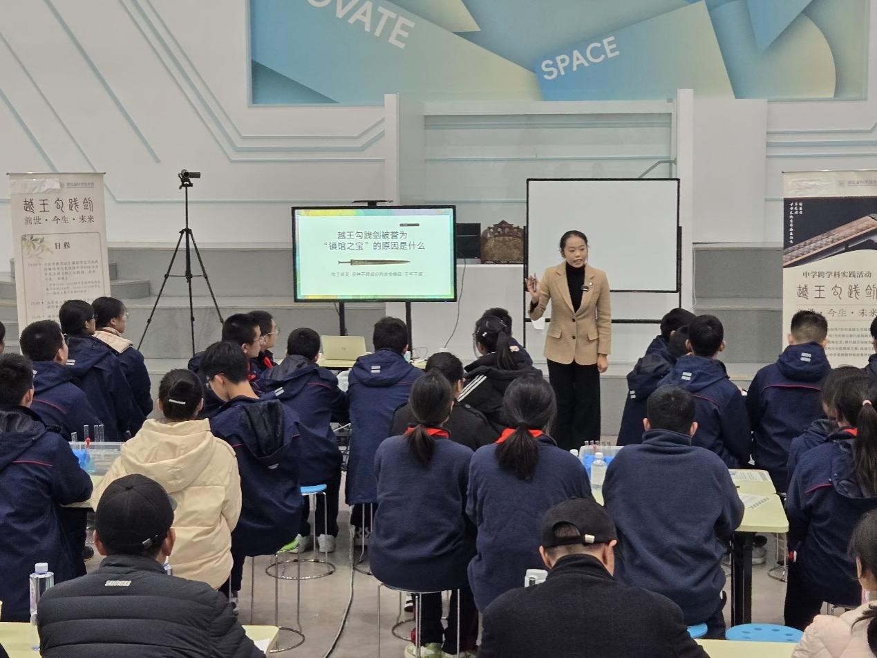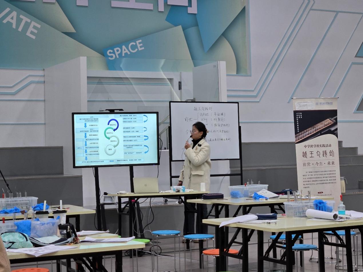 (通讯员张娉怡)12月15日下午2点,华中师范大学化学学院联合湖北省科学技术馆及武汉市武珞路中学,为37名初三年级学生带来了一场别开生面的以“越王勾践剑:前世•今生•未来”为主题的跨学科实践活动课,李佳教授教学创新团队通过探索UMS(大学,科技馆,中学)有效融合形式,开展《化学教学论》课程培养卓越职前化学教师新途径。该课堂的36名大三学生一起主动参与馆校合作,做好科学教育“加法”,展现了《化学教学论》课程创新团队在新时代教育教学改革中的创新实践探索。此次活动邀请了湖北省科学技术馆副馆长聂海林老师、科教部部长黄瑜君老师、武珞路中学化学教师袁敏、华中师范大学化学学院副院长原弘教授、华中师范大学本科教学创新奖评审专家骆启桂教授、刘德立教授、胡宗球教授现场指导,课程创新团队主要成员张文华教授也一同前往科技馆参加了教学活动。