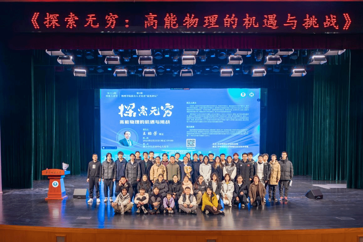 (通讯员:程雍棋 祝紫梦 万佳萌)2月21日晚,中国科学院高能物理研究所研究员、中国科学院院士、美国国家科学院外籍院士、俄罗斯科学院外籍院士、发展中国家科学院院士王贻芳做客华中师范大学第224期博雅大讲堂暨物理学院第一期拔尖人才培养“追光讲坛”,为华师一千余名师生作“探索无穷——高能物理的机遇与挑战”专题报告,深度解读高能物理领域的发展和未来。学校党委副书记刘继文为王贻芳院士颁发“博雅大讲堂”主讲人聘书,本期大讲堂由王新年教授主持。
