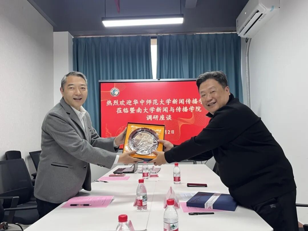 12月2日下午,新闻传播学院万忆、程秀莉、刘震、吴迪一行赴暨南大学新闻与传播学院开展调研座谈。暨南大学新闻与传播学院院长支庭荣、副院长罗昕、新闻系主任赵建国、研究生管理办公室主任杨莲、教学科研办公室主任蔡心仪共同参与座谈交流。