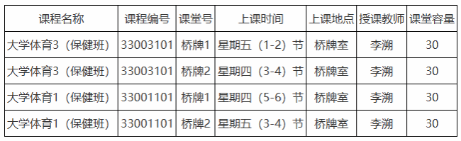 注:请入选保健班的同学从9月22日开始根据教务系统课表到指定地点上课。